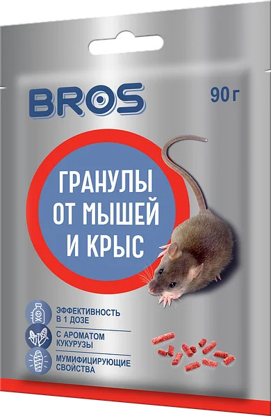 BROS Гранулы от мышей и крыс - отрава для грызунов для использования внутри помещений и рядом с ними.....