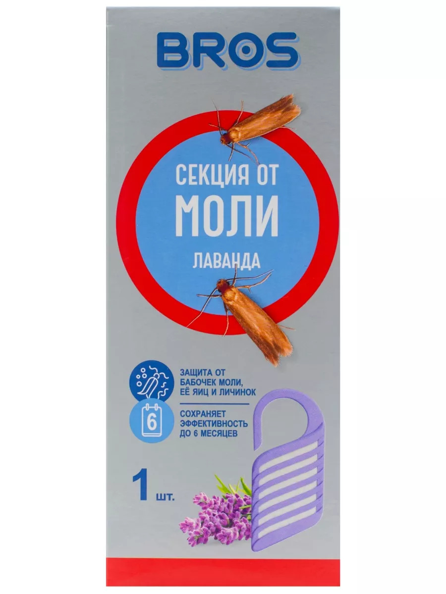 Секция от моли "Bros" предназначена для применения в гардеробах, шкафах и ящиках. Эффективно защищае.....