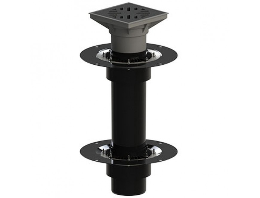 Двухуровневая кровельная воронка с трапом, прижимными фланцами из нержавеющей стали и дренажным кольцом, ТП-10.616 предназначена для отвода дождевой и талой воды с верхних и нижних слоев многоуровневых кровель в дождевую канализацию. Применяется на неэксплуатируемых и эксплуатируемых инверсионных кровлях с любыми гидро-, пароизоляционными материалами и теплоизоляцией, с «пирогами» любой толщины и наполнения. Используются для непосредственного монтажа со стальными, чугунными или пластиковыми трубами. Кровельная воронка производится с увеличенным корпусом для большего прилегания гидро- и пароизоляции к воронке, а её основания – к плоскости кровли. В основании воронки имеются технологические отверстия для дополнительной фиксации к основанию кровли – ж/б перекрытиям, профнастилу из стального листа и т.п. Срок службы- не менее 50 лет.