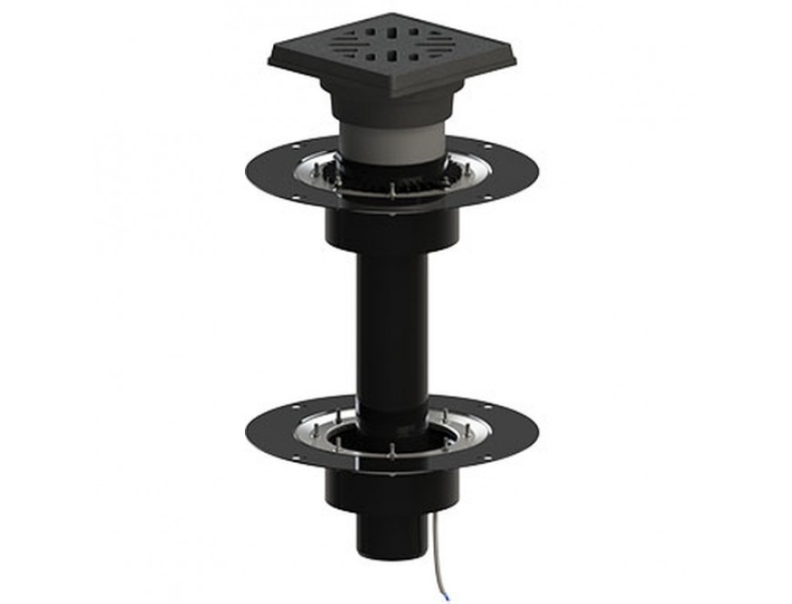 Двухуровневая кровельная воронка с увеличенным корпусом, подрамником из чугуна, трапом, прижимными фланцами из нержавеющей стали и дренажным кольцом, ТП-10.У.616.1-Э с электрообогревом