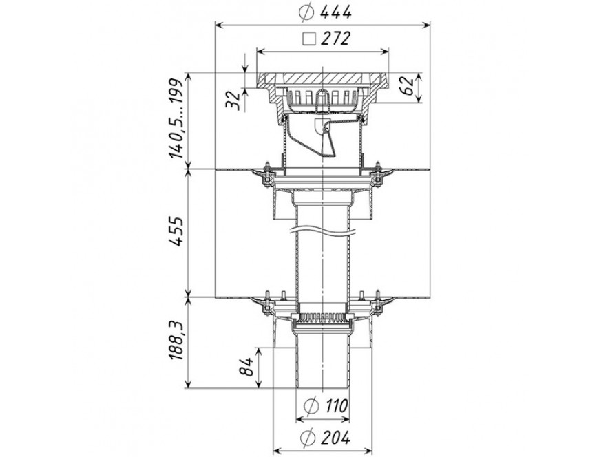 ТРАП ВЕРТИКАЛЬНЫЙ ТП-606.1 С ЧУГУННЫМ ПОДРАМНИКОМ С ЧУГУННОЙ РЕШЕТКОЙ С ГРЯЗЕУЛОВИТЕЛЕМ И ЗАПАХОЗАПИРАЮЩИМ УСТРОЙСТВОМ