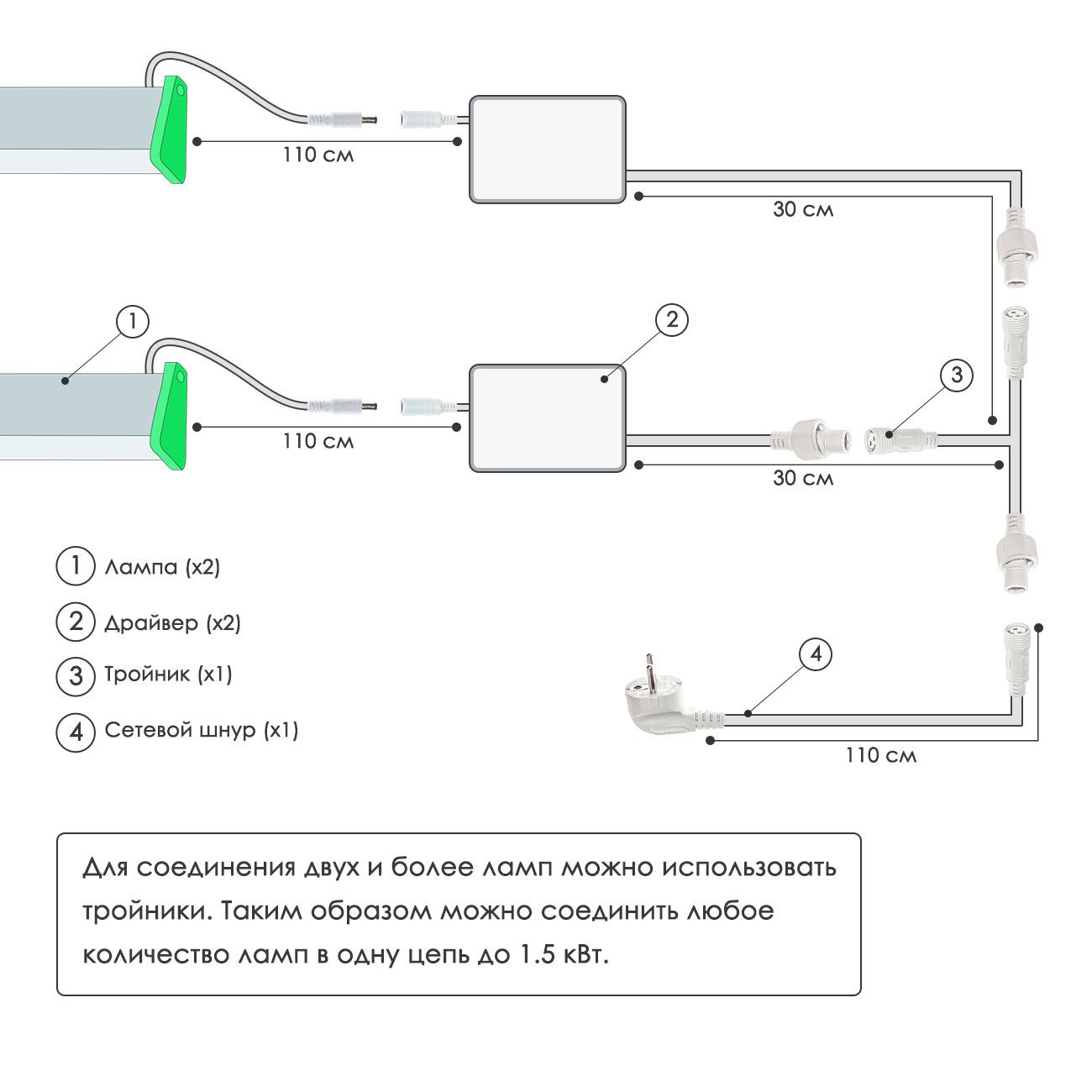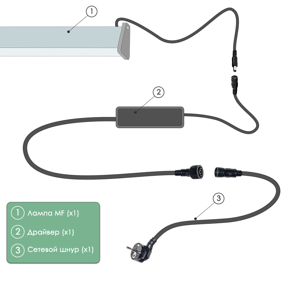 Комплектация : Ламп, драйвер с проводом длиной 3 метра, у светильников нет своей индивидуальной упаковки в виде коробки.
