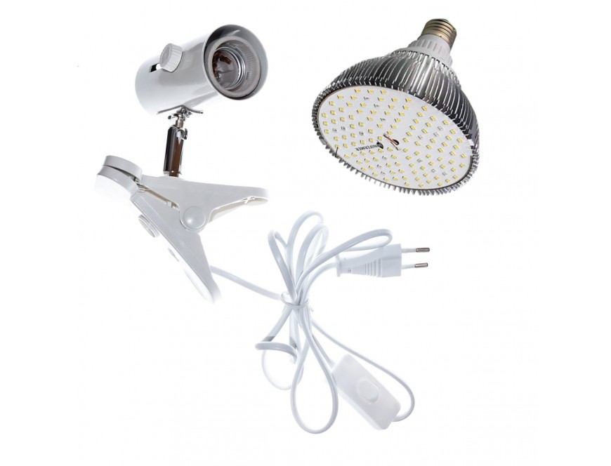 Патрон-прищепка E27 с выключателем для фитолампы белый