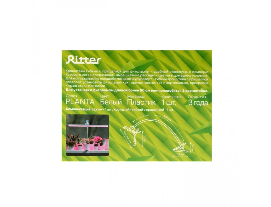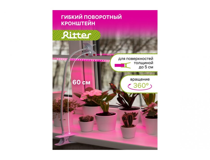 Штатив гибкий с прищепкой и держателем для фитосветильника, Ritter, белый