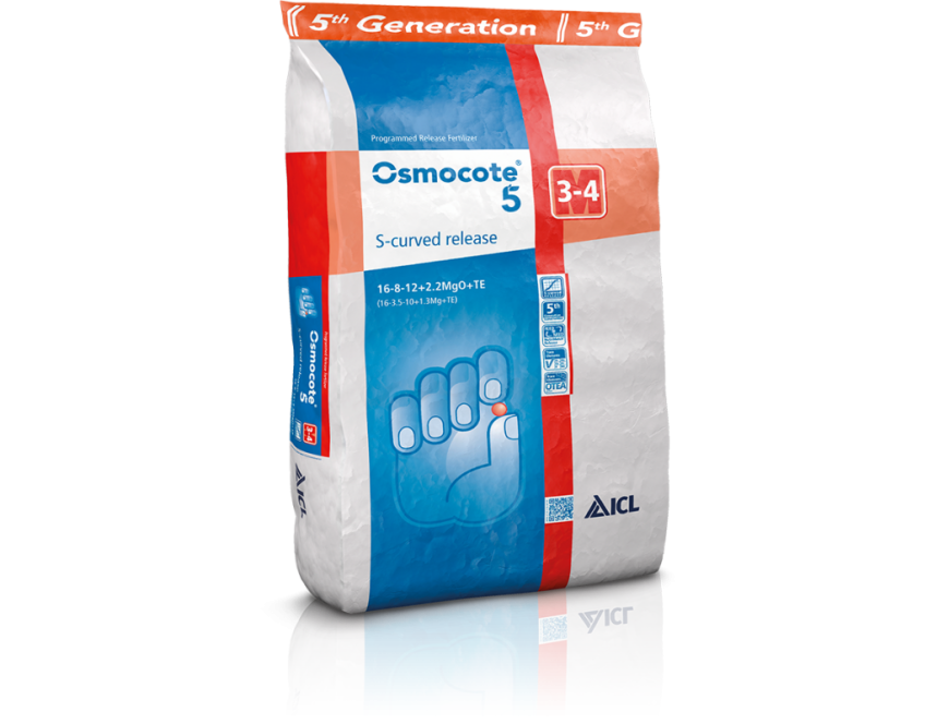 Минеральное удобрение длительного действия Осмокот 5 поколение (Osmocote 5 Generation" S-curved release) 16-8-12+2,2MgO+TE, 3-4мес, 25кг
