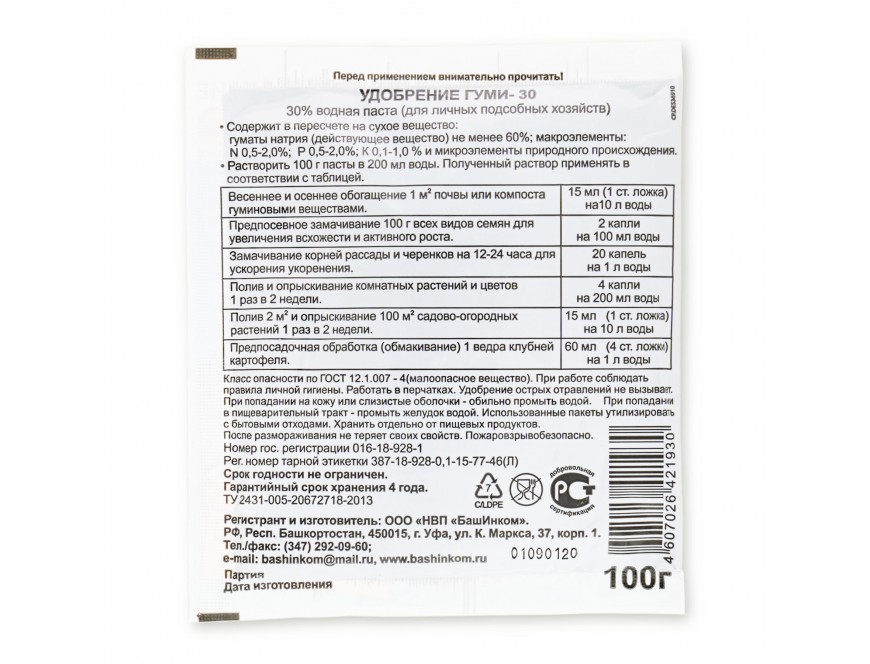 Природный эликсир плодородия Гуми-30 Супер-Универсал для овощей, ягод, цветов и декоративных растений, паста, 100г