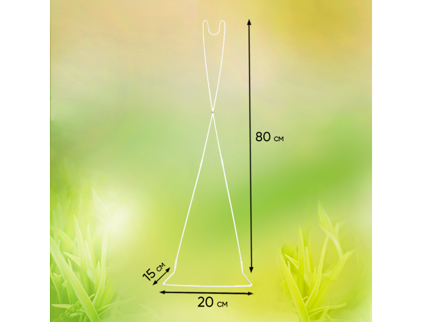 Подставка 80 см будет считаться собранной и готовой к эксплуатации после того , как собрав ее Вы повернете верх подставки на 180 градусов создав фигуру » Песочные часы» и на пересечении стоек стяните хомутиком. Таким образом, задав сцепку в узлах соединения.