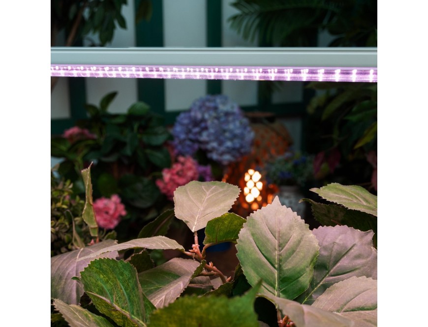 Современный линейный светильник для растений ULI-P13-24W/SPLE IP40 WHITE от Uniel предназначен для освещения и досветки в помещениях декоративных растений, ароматных трав и рассады. Мягкое розовое свечение спектра SPLE повторяет спектр требующийся растениям для фотосинтеза. Фитосветильник прост в сборке и легок в установке. На корпусе имеется удобный выключатель. Площадь освещения 1,1-2 м2, в зависимости от высоты крепления. Источником света являются светодиоды, которые не нагревают воздух при работе и экономят электроэнергию. Класс энергопотребления А+. В комплект поставки входят крепежные изделия и специальные переходники для последовательного соединения до 5 светильников.